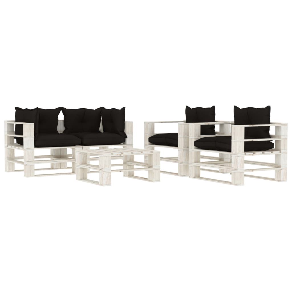 5-częściowy zestaw wypoczynkowy z palet, z czarnymi poduszkami