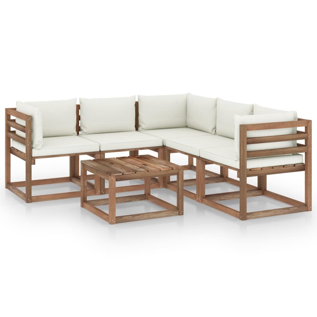 6-cz. ogrodowy zestaw wypoczynkowy, kremowe poduszki, sosna