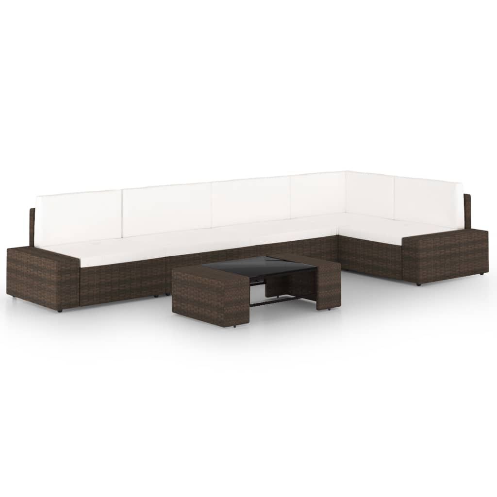 6-cz. ogrodowy zestaw wypoczynkowy, poduszki, rattan PE, brąz