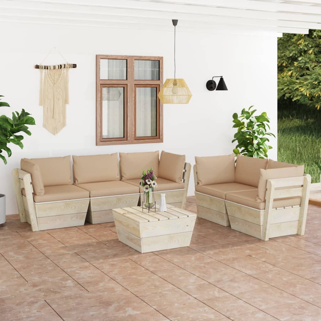 6-cz. ogrodowy zestaw wypoczynkowy z palet, poduszki, świerk