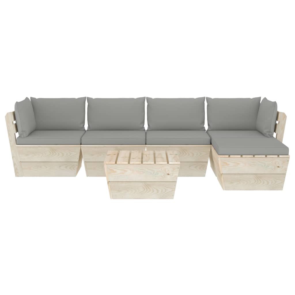 6-cz. ogrodowy zestaw wypoczynkowy z palet, poduszki, świerk