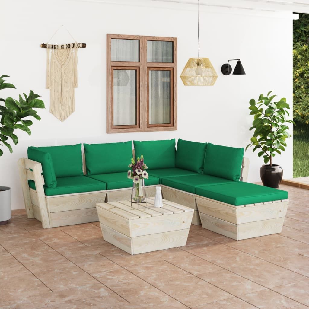 6-cz. ogrodowy zestaw wypoczynkowy z palet, poduszki, świerk