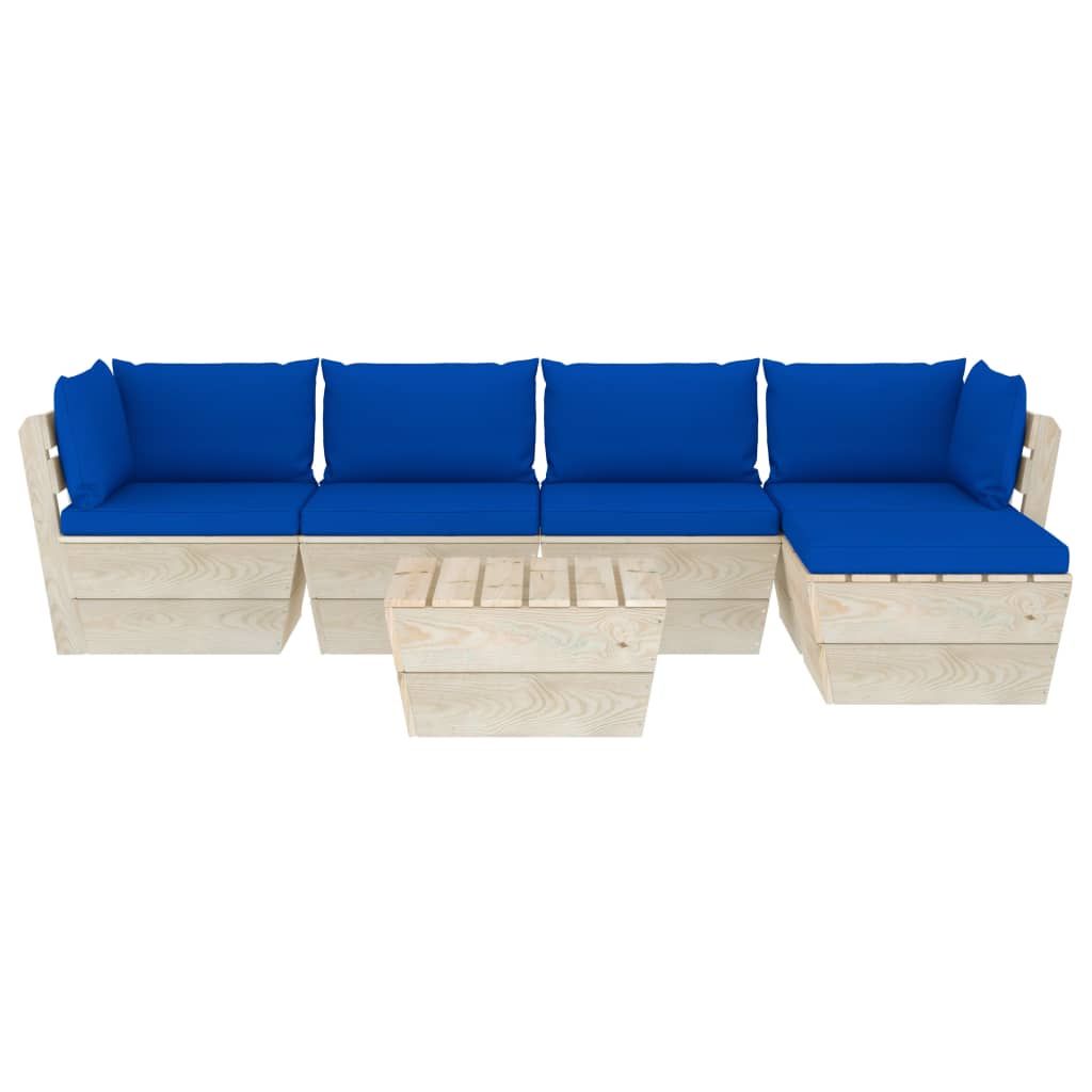 6-cz. ogrodowy zestaw wypoczynkowy z palet, poduszki, świerk