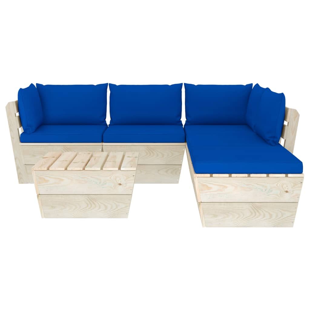 6-cz. ogrodowy zestaw wypoczynkowy z palet, poduszki, świerk