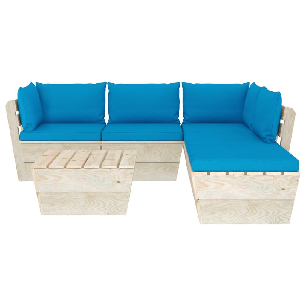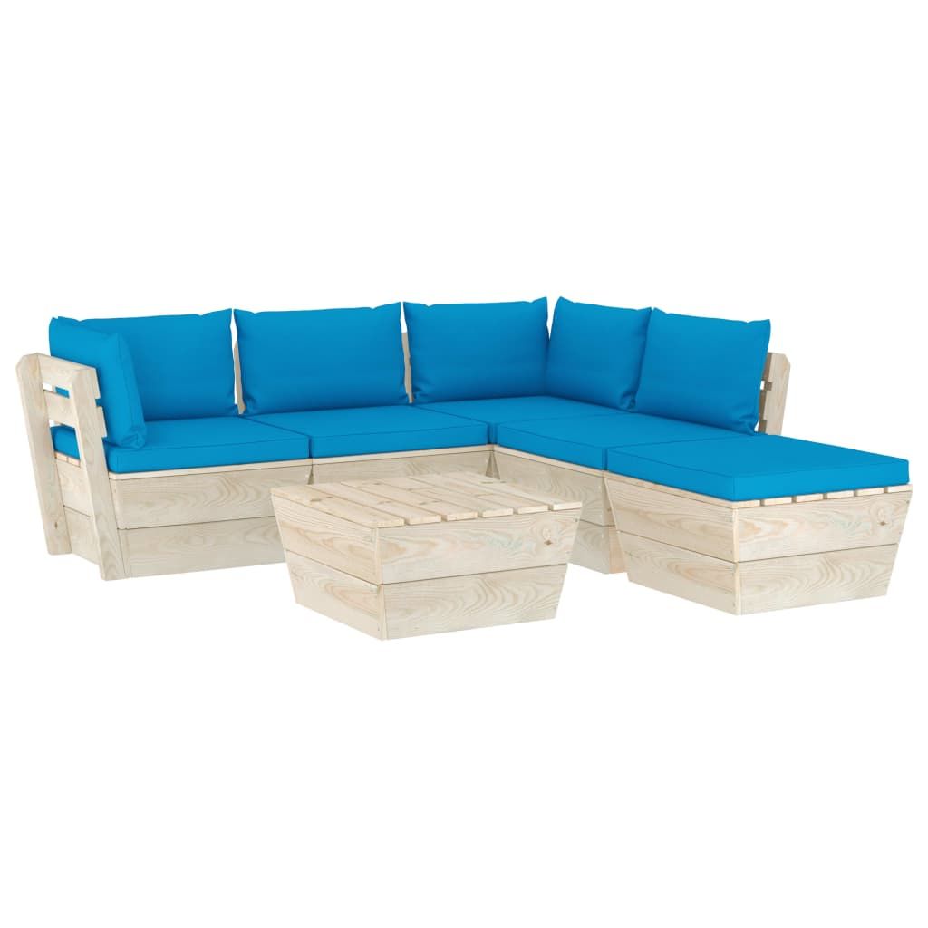 6-cz. ogrodowy zestaw wypoczynkowy z palet, poduszki, świerk