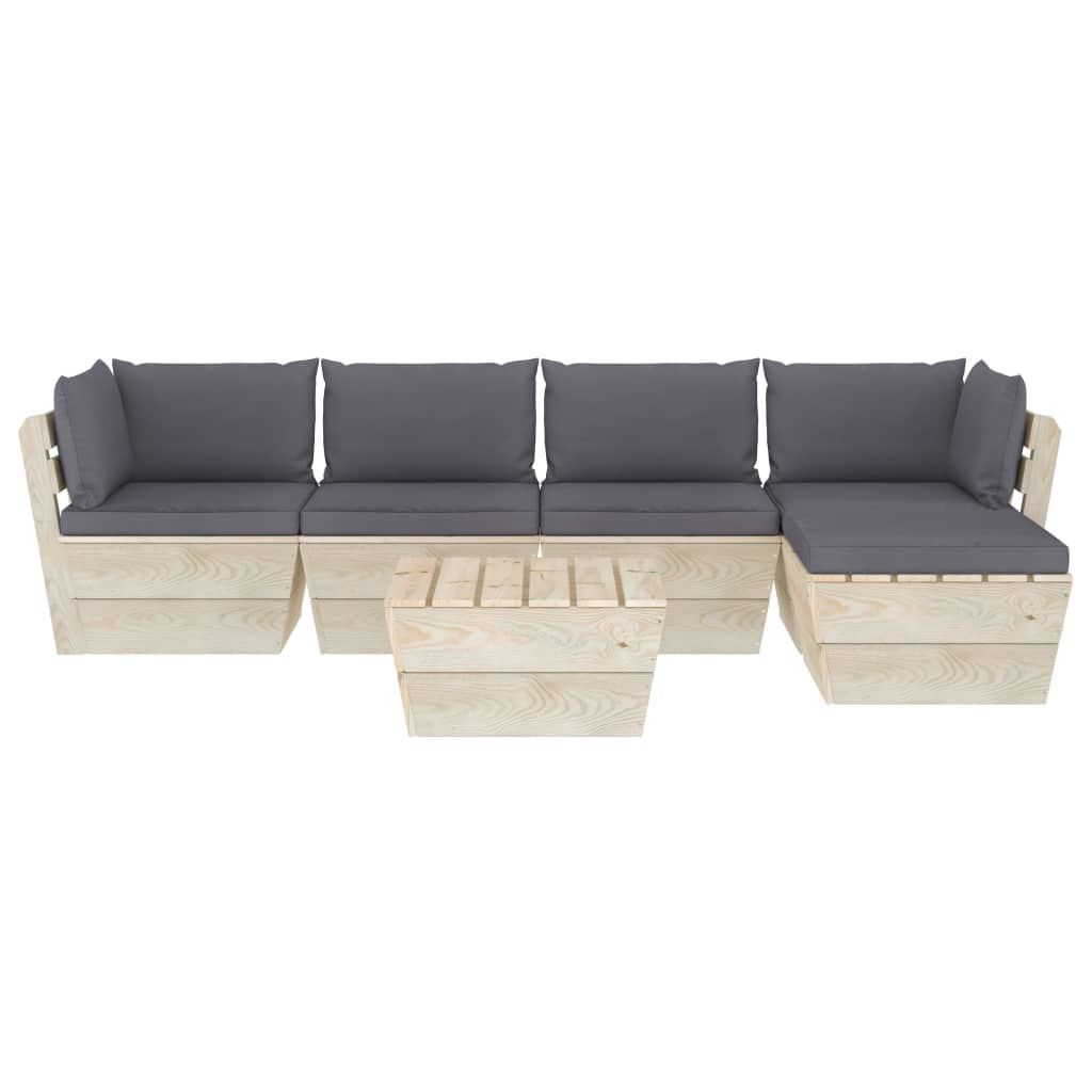 6-cz. ogrodowy zestaw wypoczynkowy z palet, poduszki, świerk