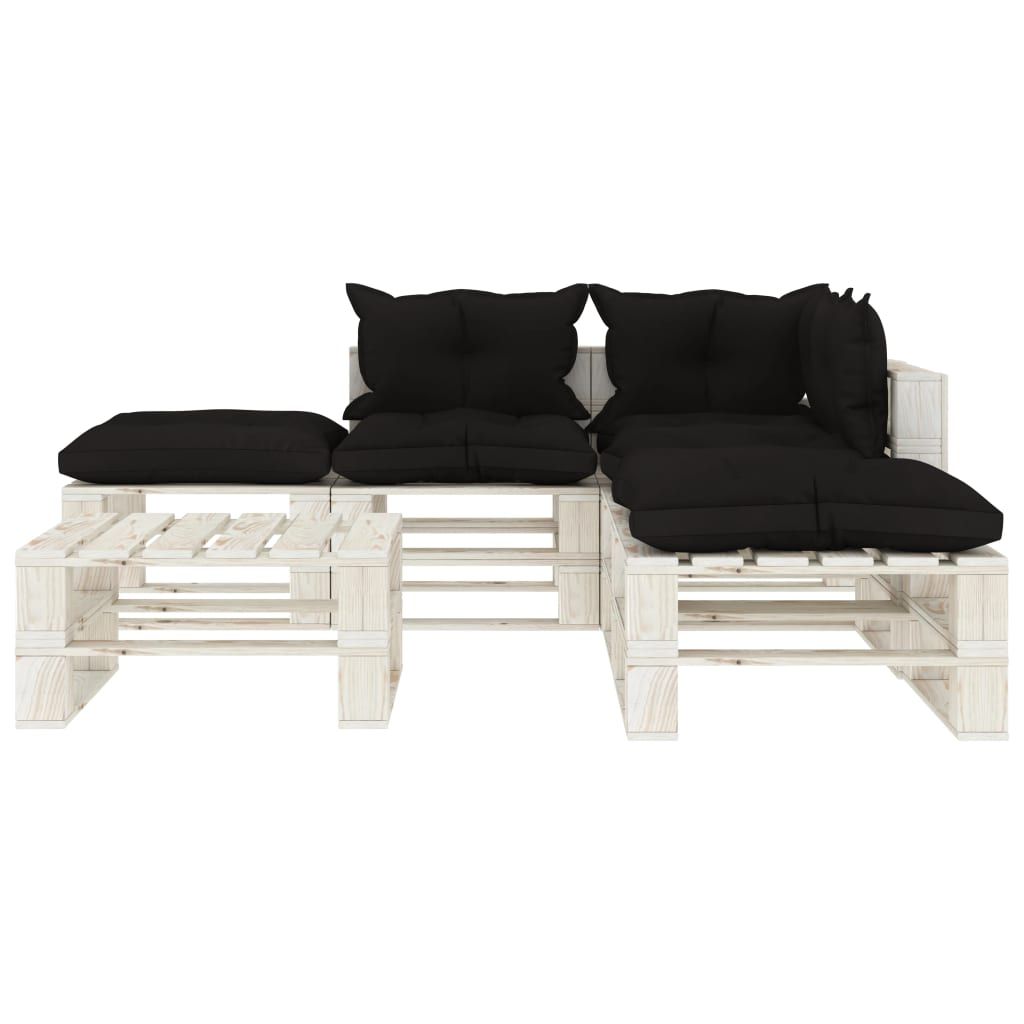 6-cz. zestaw mebli do ogrodu, palety z drewna, czarne poduszki