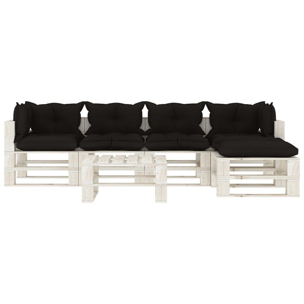 6-cz. zestaw mebli do ogrodu, palety z drewna, czarne poduszki