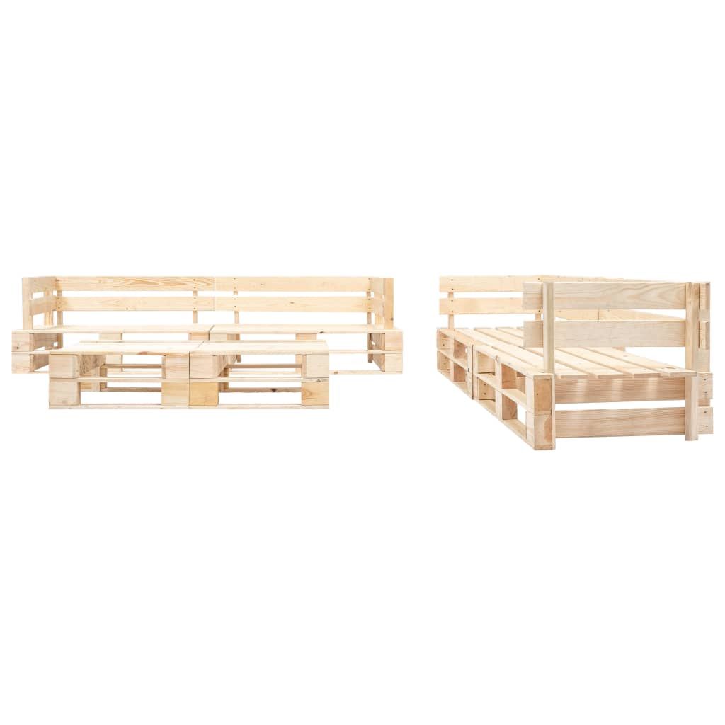 Opis produktu: Nasz ogrodowy zestaw wypoczynkowy z palet będzie idealnym wyborem, aby się zrelaksować i skorzystać ze świeżego powietrza, uciąć sobie drzemkę czy pogawędzić z rodziną lub przyjaciółmi. Dzięki ponadczasowej konstrukcji z palet komplet ten wniesie odrobinę rustykalnego uroku na Twoje patio, do ogrodu lub salonu. Wykonany z impregnowanego drewna sosnowego zestaw wypoczynkowy do ogrodu jest trwały, odporny na czynniki pogodowe i przyjazny dla środowiska. Charakteryzuje się solidną konstrukcją i łatwością w utrzymaniu. W połączeniu z grubo wypełnionymi poduszkami (nie są one częścią zestawu) komplet oferuje najwyższy komfort. Stolik kawowy jest idealny do postawienia przekąsek i napojów w zasięgu ręki. Montaż mebli jest łatwy. Prosimy mieć na uwadze, że drewno to materiał naturalny i może wykazywać pewne niedoskonałości.