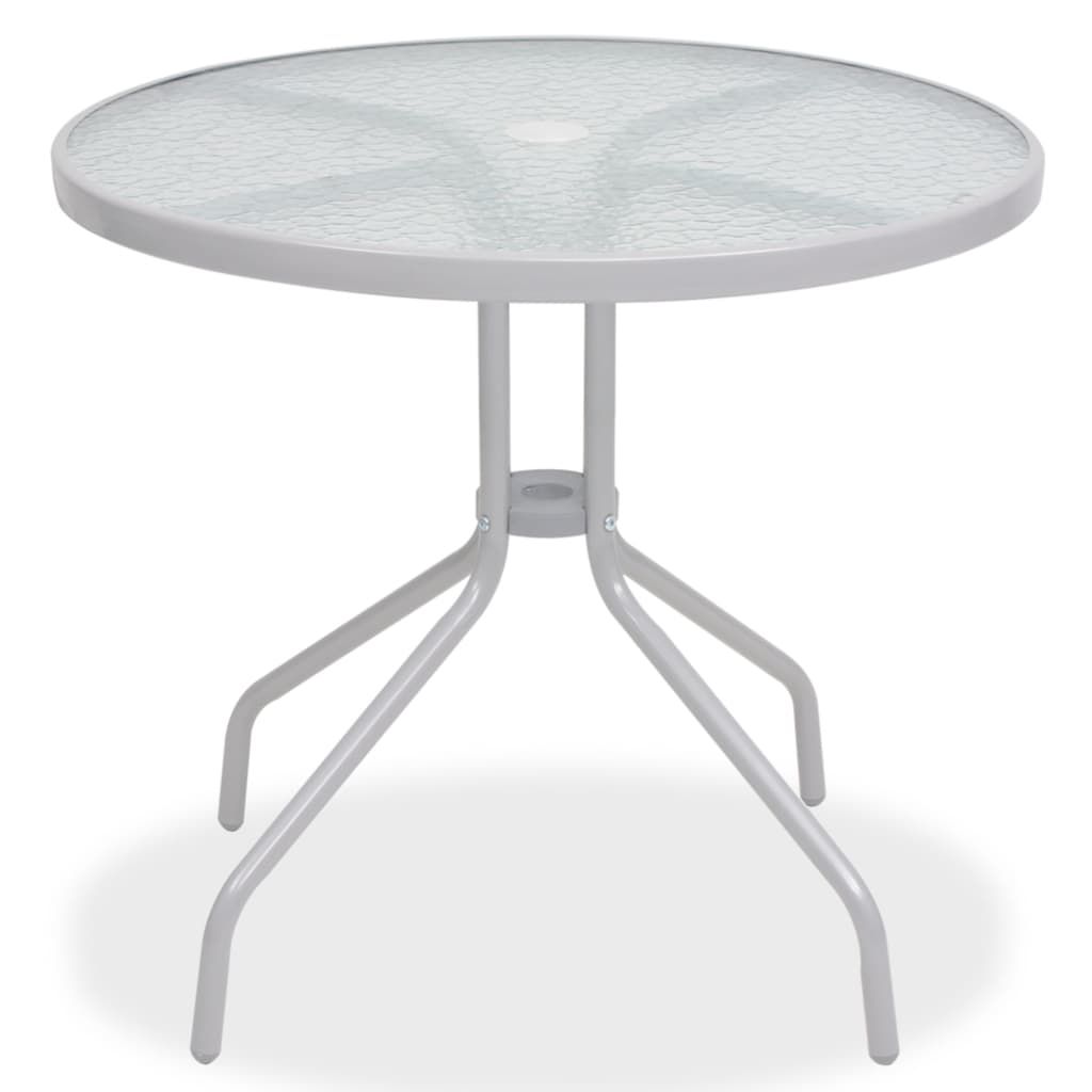 Ten 6-częściowy zestaw mebli ogrodowych będzie świetnym wyborem, jeśli masz ochotę na relaks lub spożywanie posiłków w ogrodzie. Jest nie tylko praktyczny, ale również dekoracyjny. Wygodne krzesła są wykonane z wysokiej jakości stali malowanej proszkowo. Dzięki mocnym siedziskom i oparciom wykonanym z materiału textilene nasze krzesła są niezwykle komfortowe i odporne na warunki pogodowe. Stół posiada duży, wytrzymały i łatwy w czyszczeniu blat ze szkła hartowanego, które ma ozdobną strukturę fal wody. Parasol wchodzący w skład zestawu ochroni Cię przed słońcem. Krzesła można nałożyć na siebie, kiedy nie są używane, aby zaoszczędzić nieco miejsca. Montaż jest prosty. Przesyłka obejmuje 4 krzesła, 1 stół i 1 parasol.