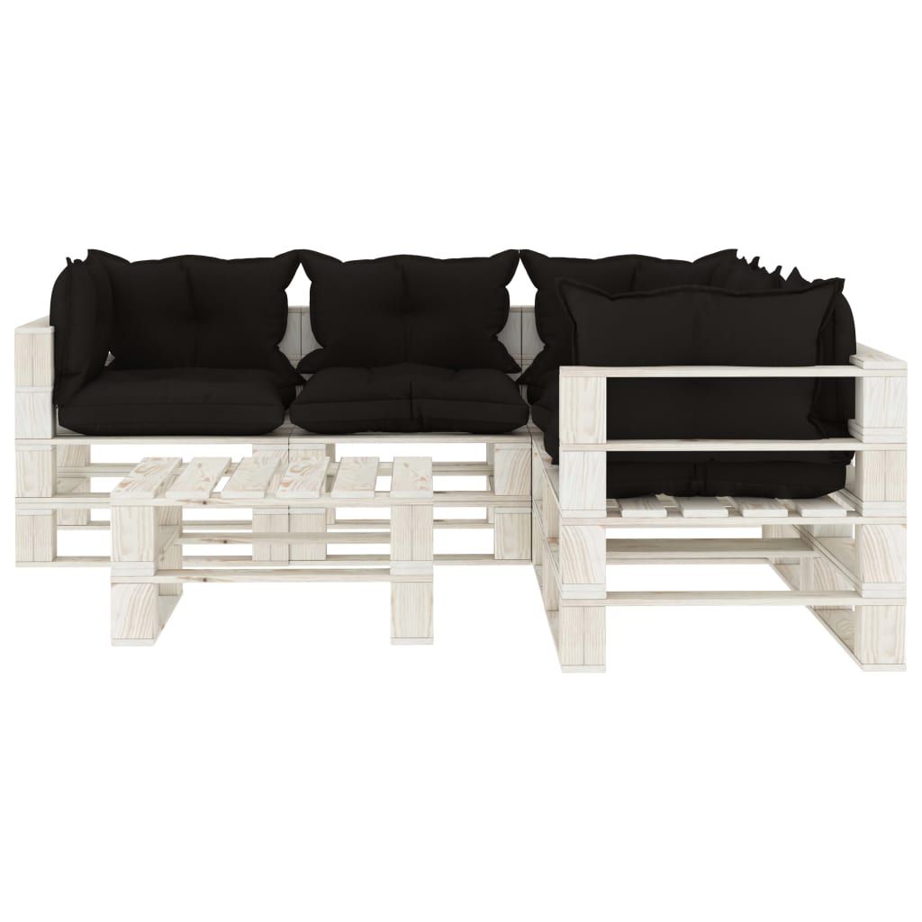 6-cz. zestaw mebli ogrodowych z palet, z czarnymi poduszkami