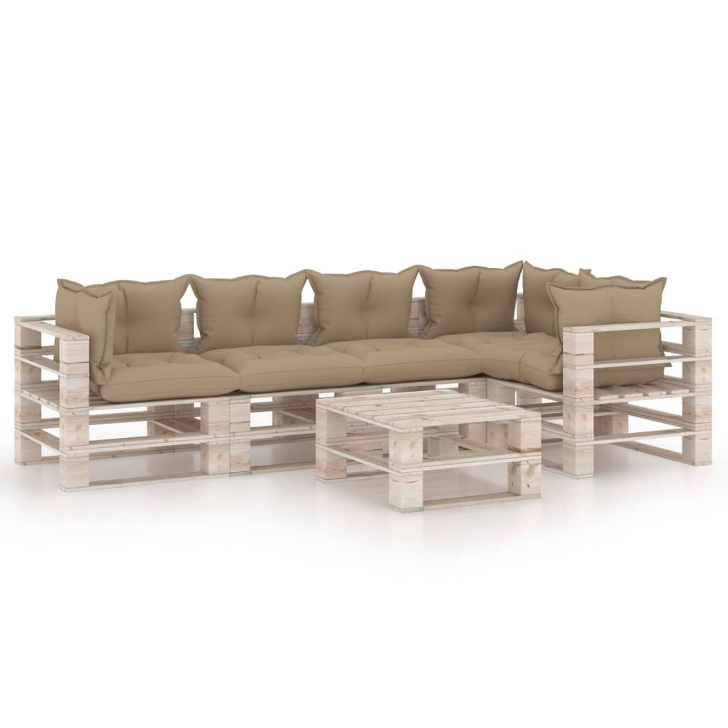 6-cz. zestaw mebli ogrodowych z palet, z poduszkami, sosna