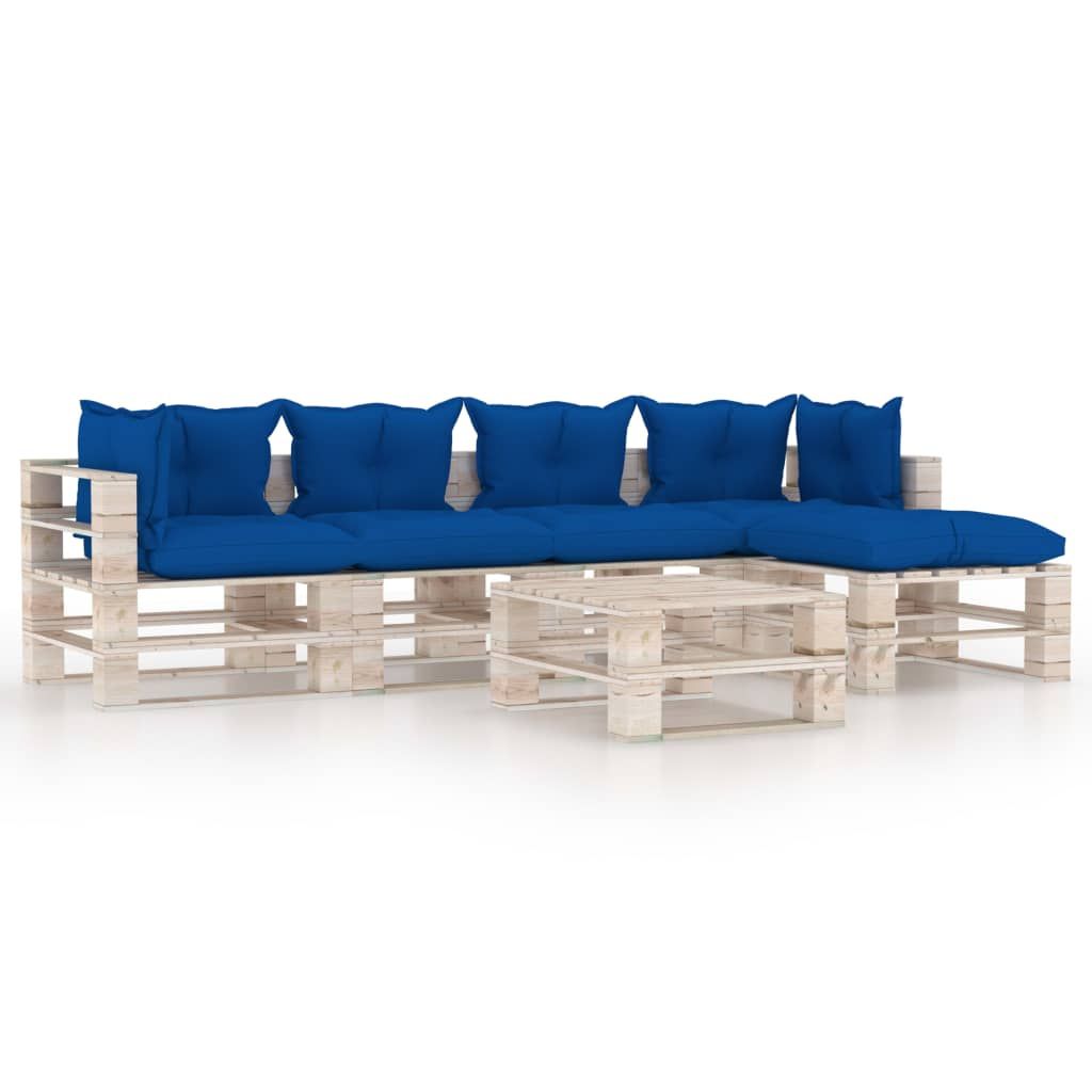 6-cz. zestaw mebli ogrodowych z palet, z poduszkami, sosna