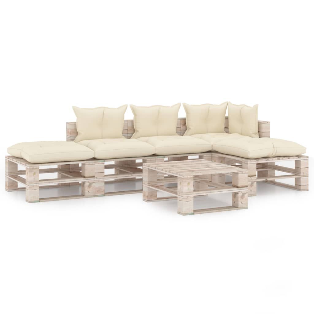 6-cz. zestaw mebli ogrodowych z palet, z poduszkami, sosna