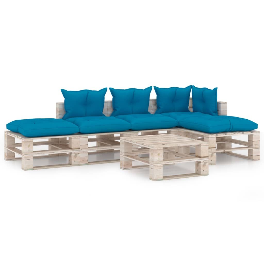 6-cz. zestaw mebli ogrodowych z palet, z poduszkami, sosna