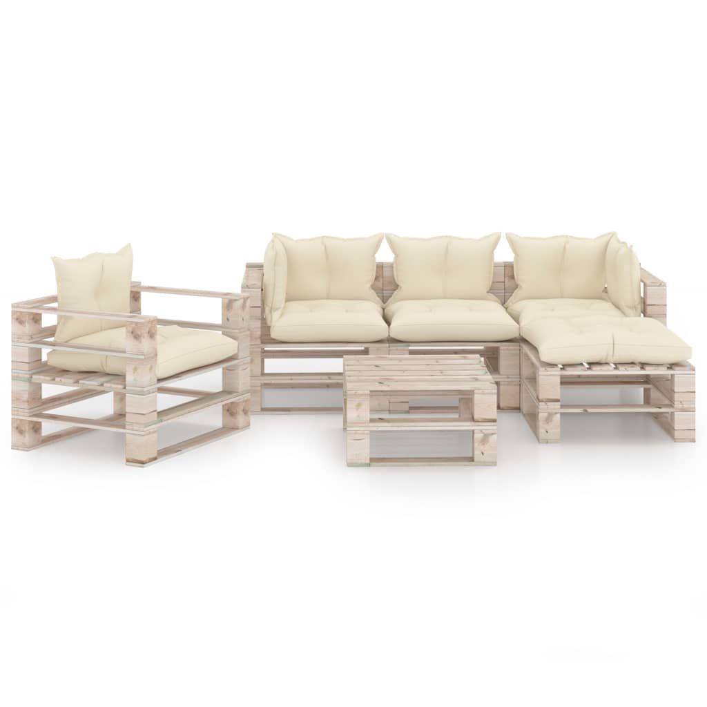 6-cz. zestaw mebli ogrodowych z palet, z poduszkami, sosna