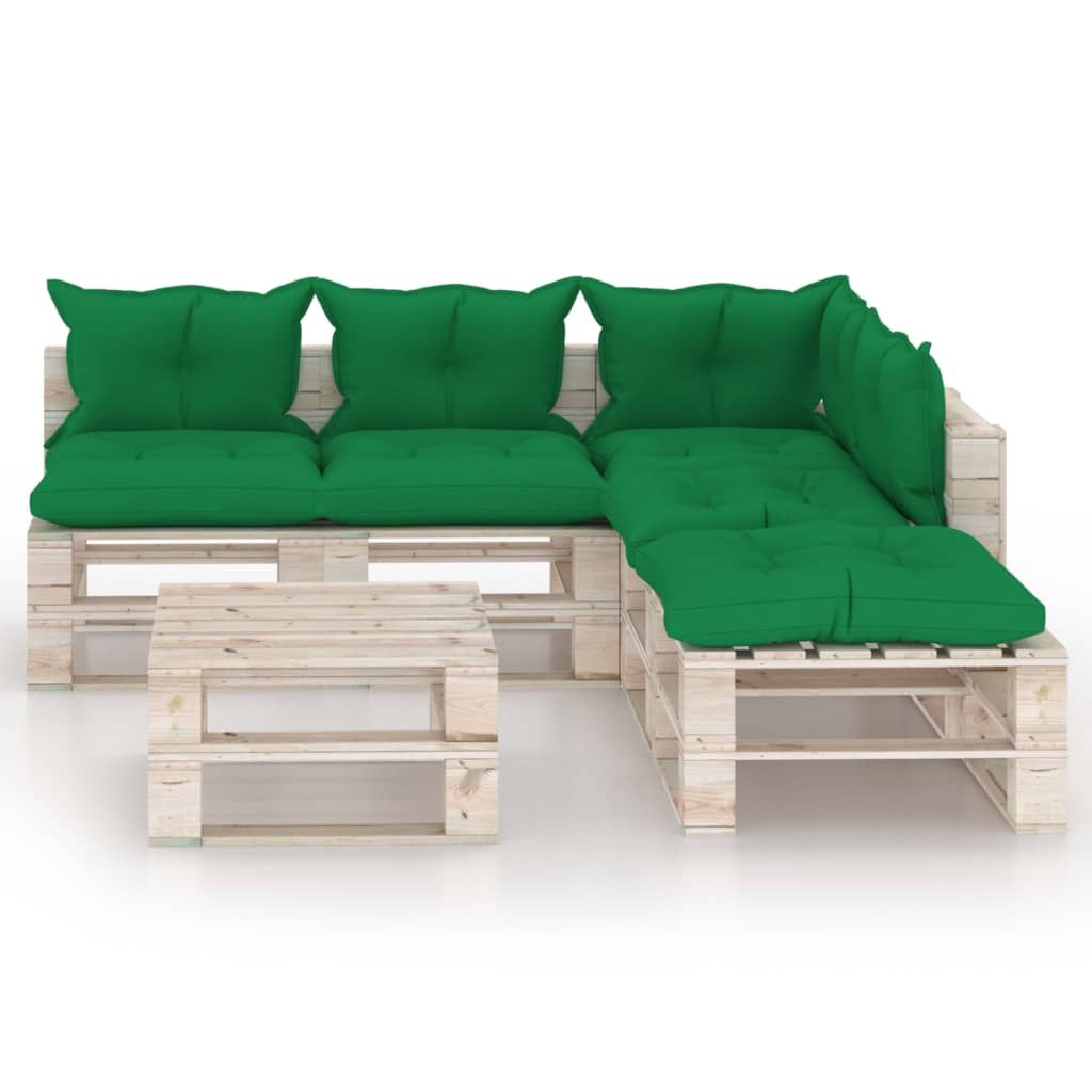 6-cz. zestaw mebli ogrodowych z palet, z poduszkami, sosna