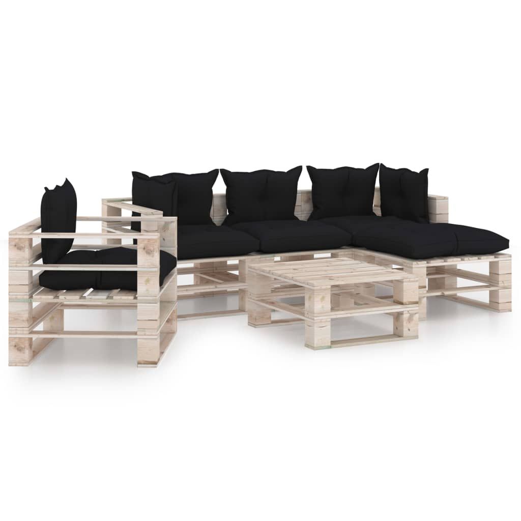 6-cz. zestaw mebli ogrodowych z palet, z poduszkami, sosna
