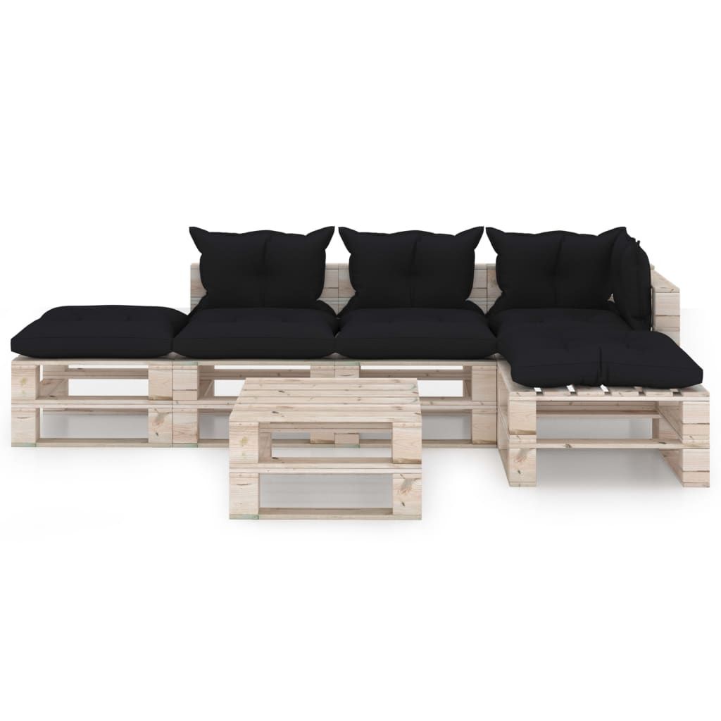 6-cz. zestaw mebli ogrodowych z palet, z poduszkami, sosna