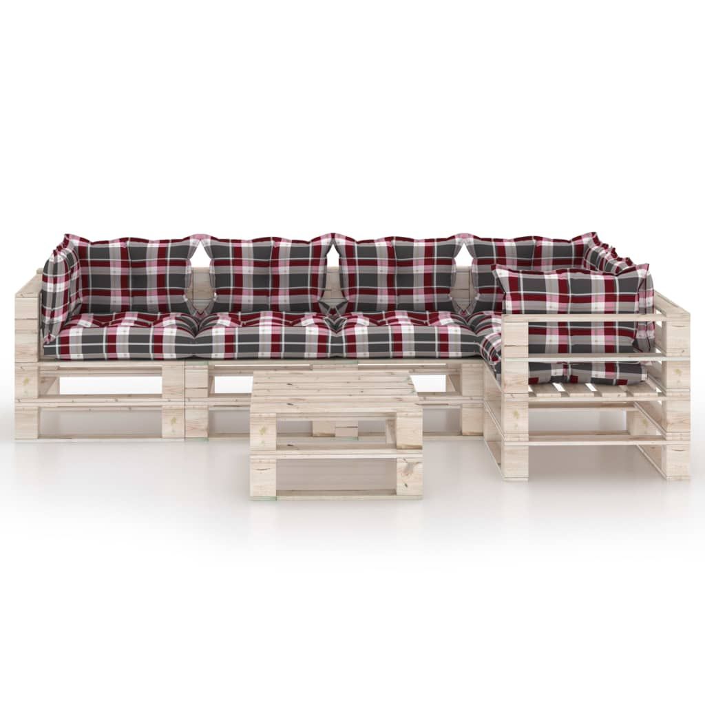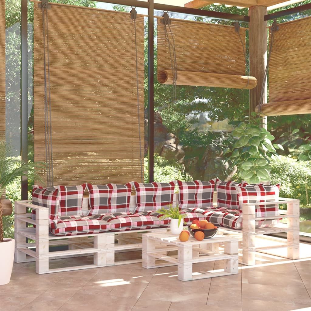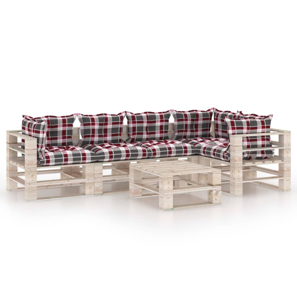 6-cz. zestaw mebli ogrodowych z palet, z poduszkami, sosna