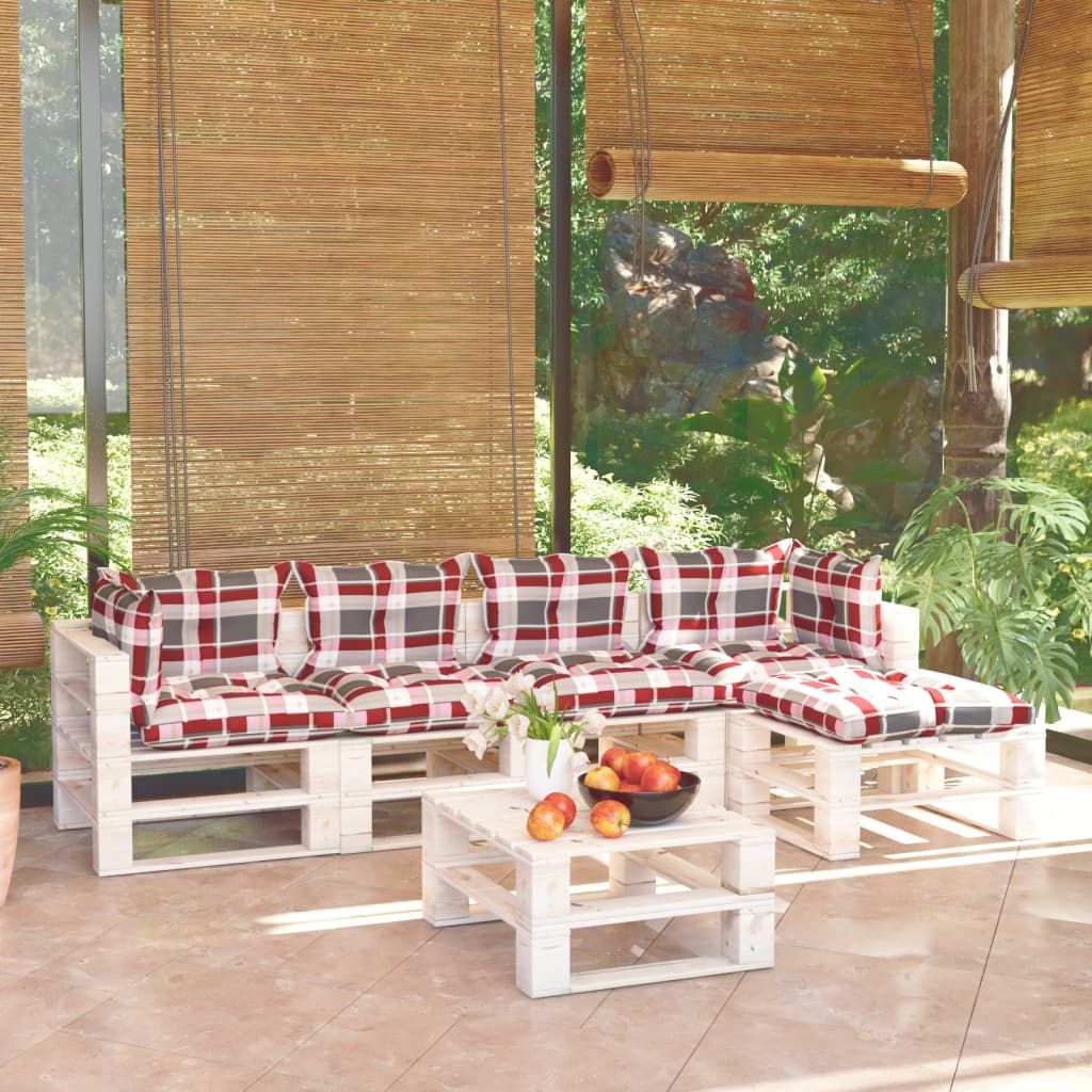 6-cz. zestaw mebli ogrodowych z palet, z poduszkami, sosna