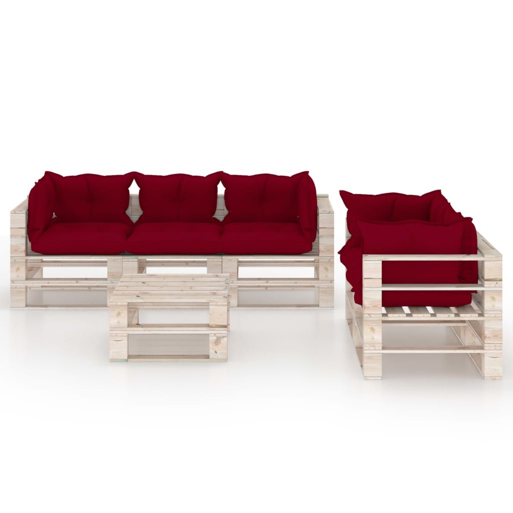 6-cz. zestaw mebli ogrodowych z palet, z poduszkami, sosna