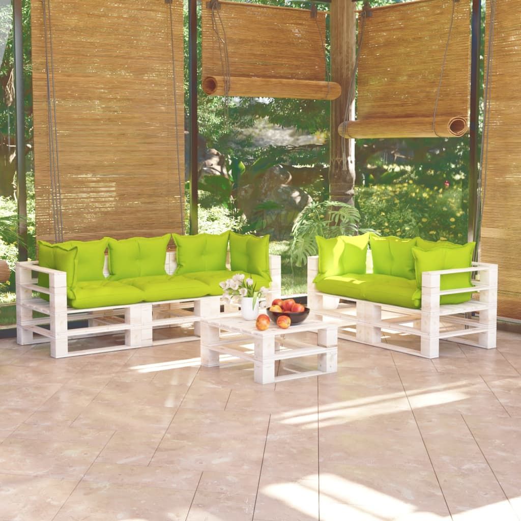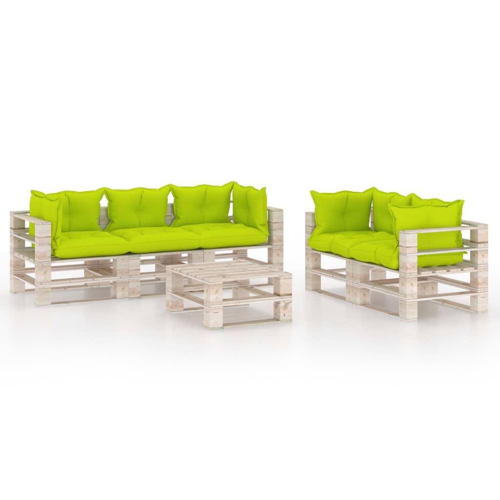 6-cz. zestaw mebli ogrodowych z palet, z poduszkami, sosna