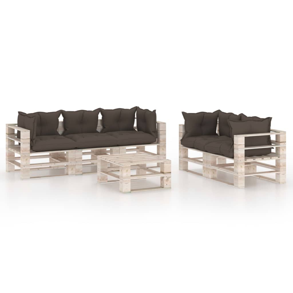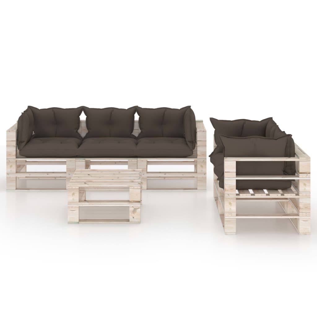 6-cz. zestaw mebli ogrodowych z palet, z poduszkami, sosna