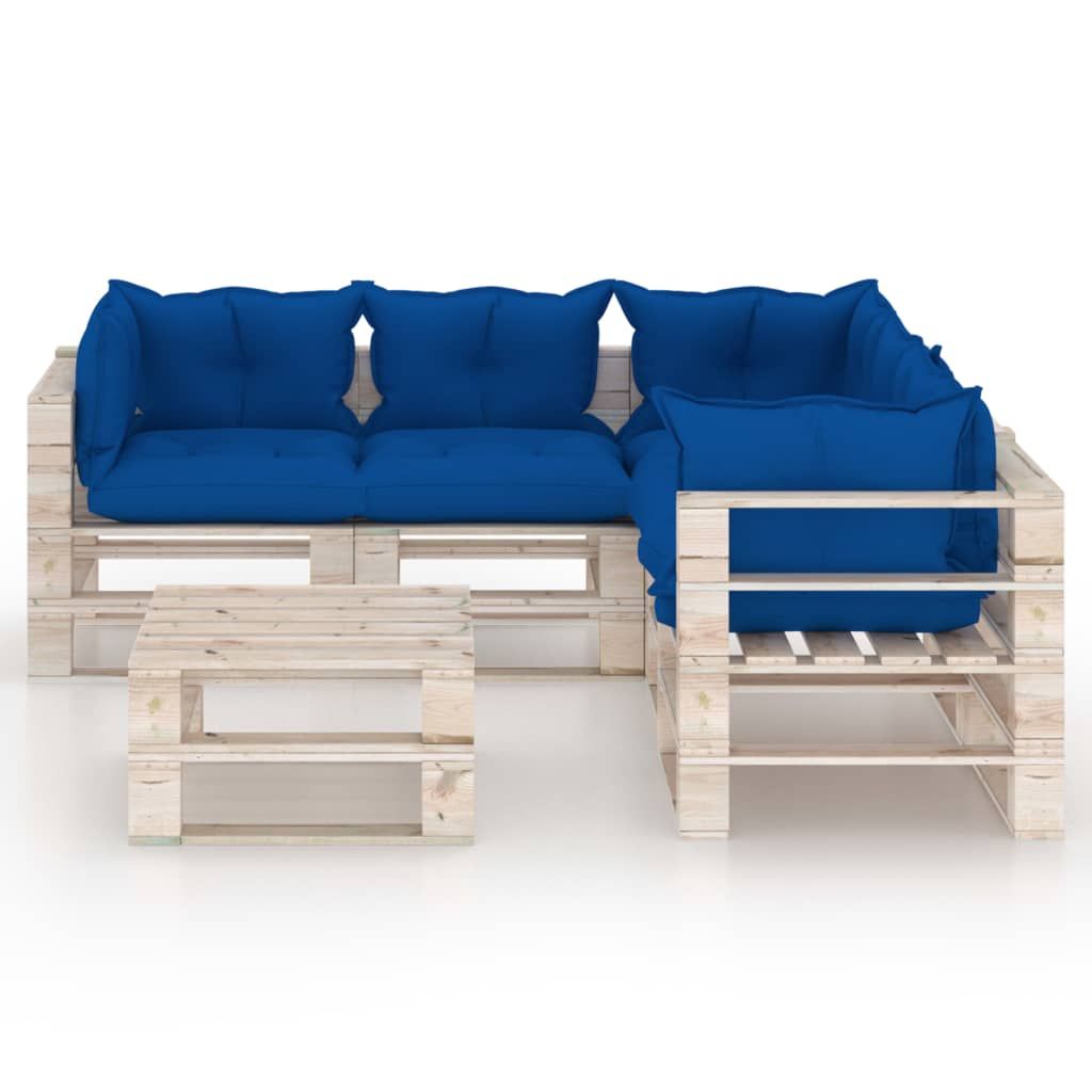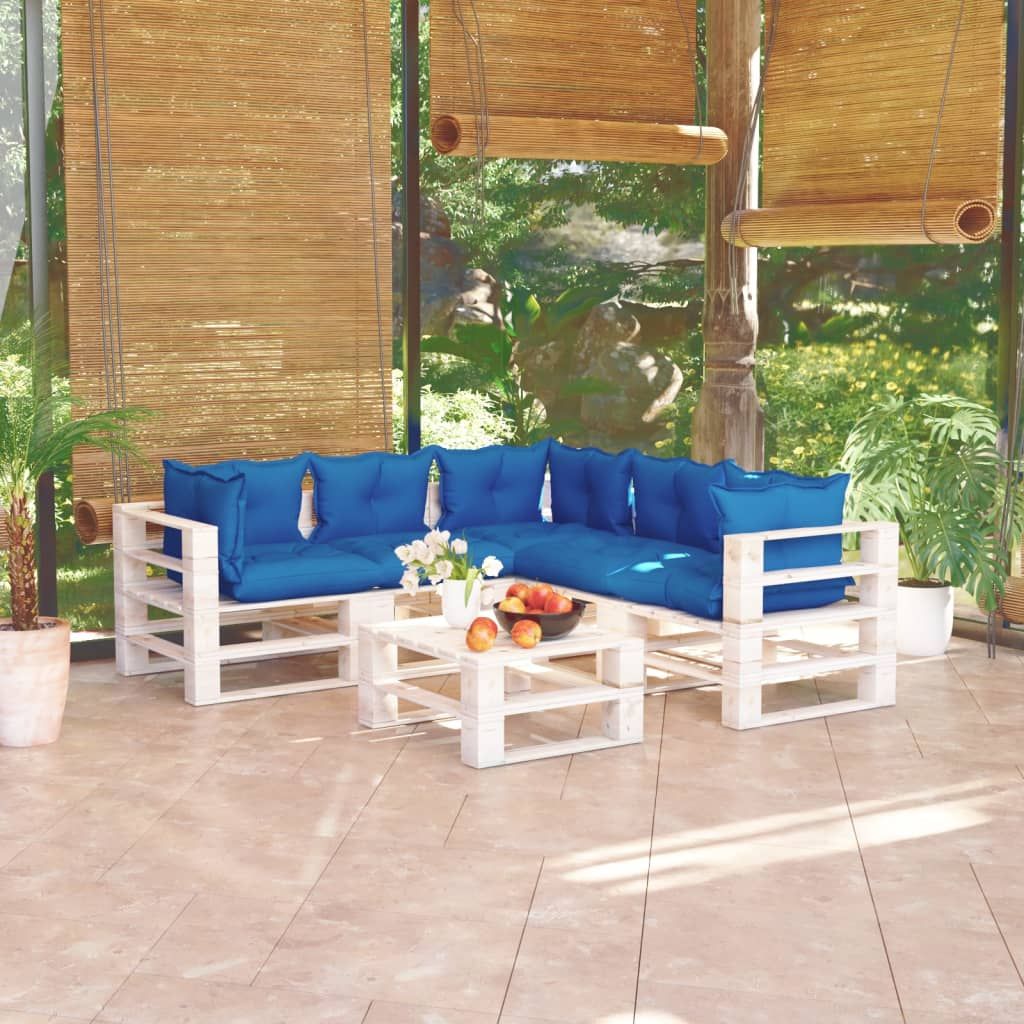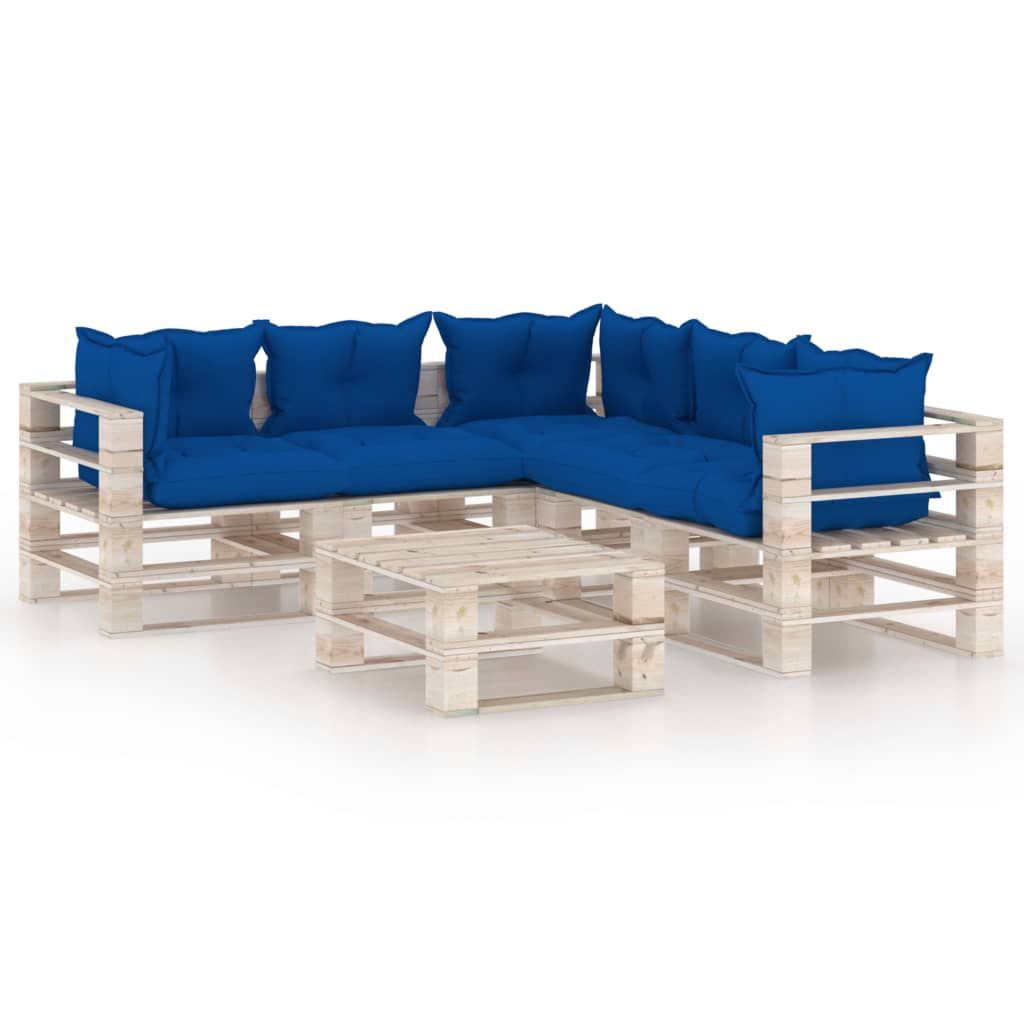 6-cz. zestaw mebli ogrodowych z palet, z poduszkami, sosna
