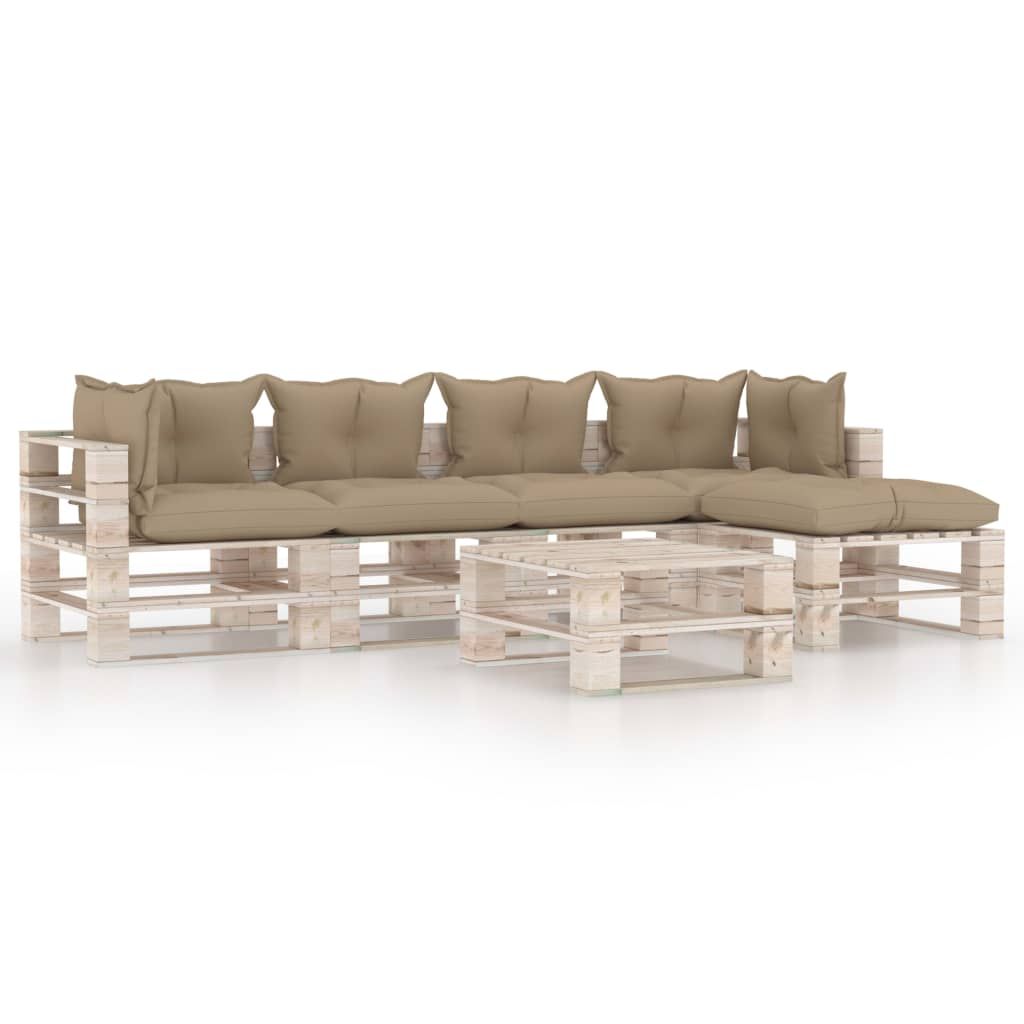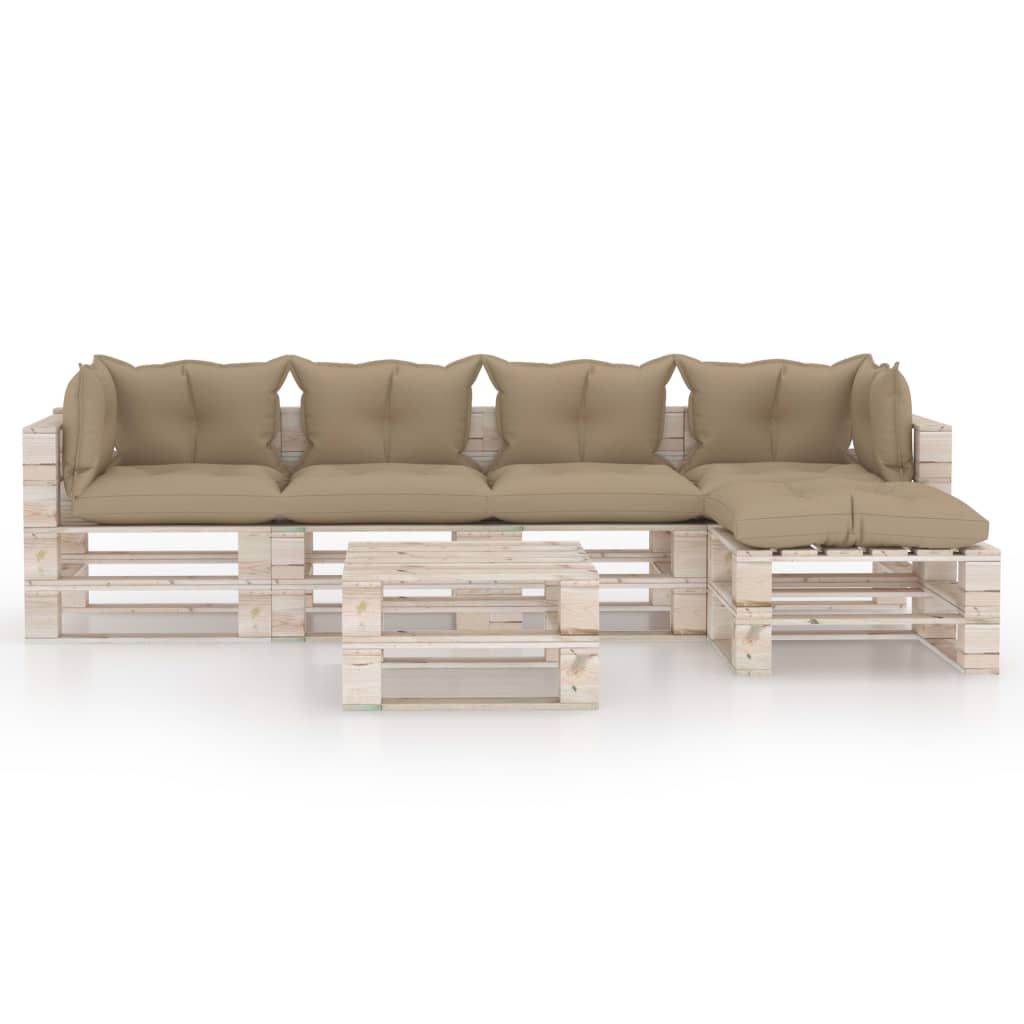 6-cz. zestaw mebli ogrodowych z palet, z poduszkami, sosna