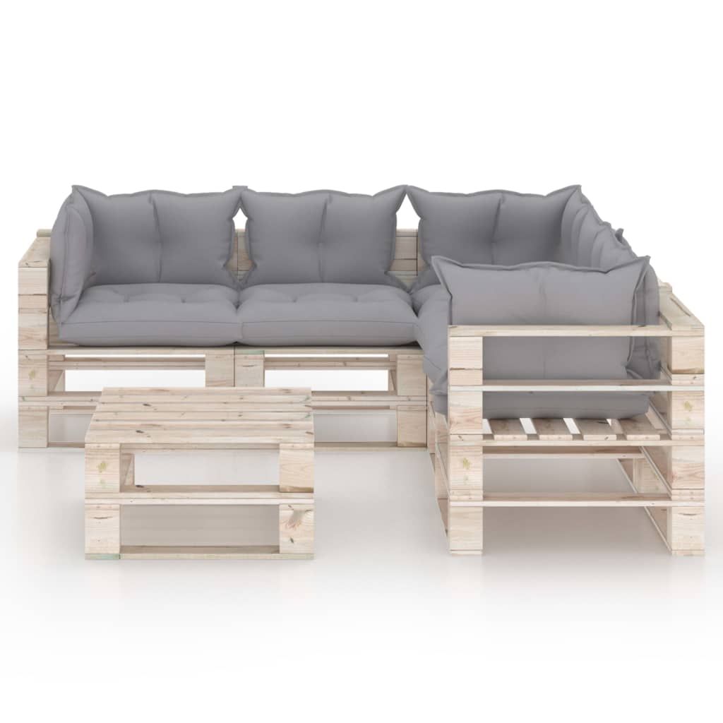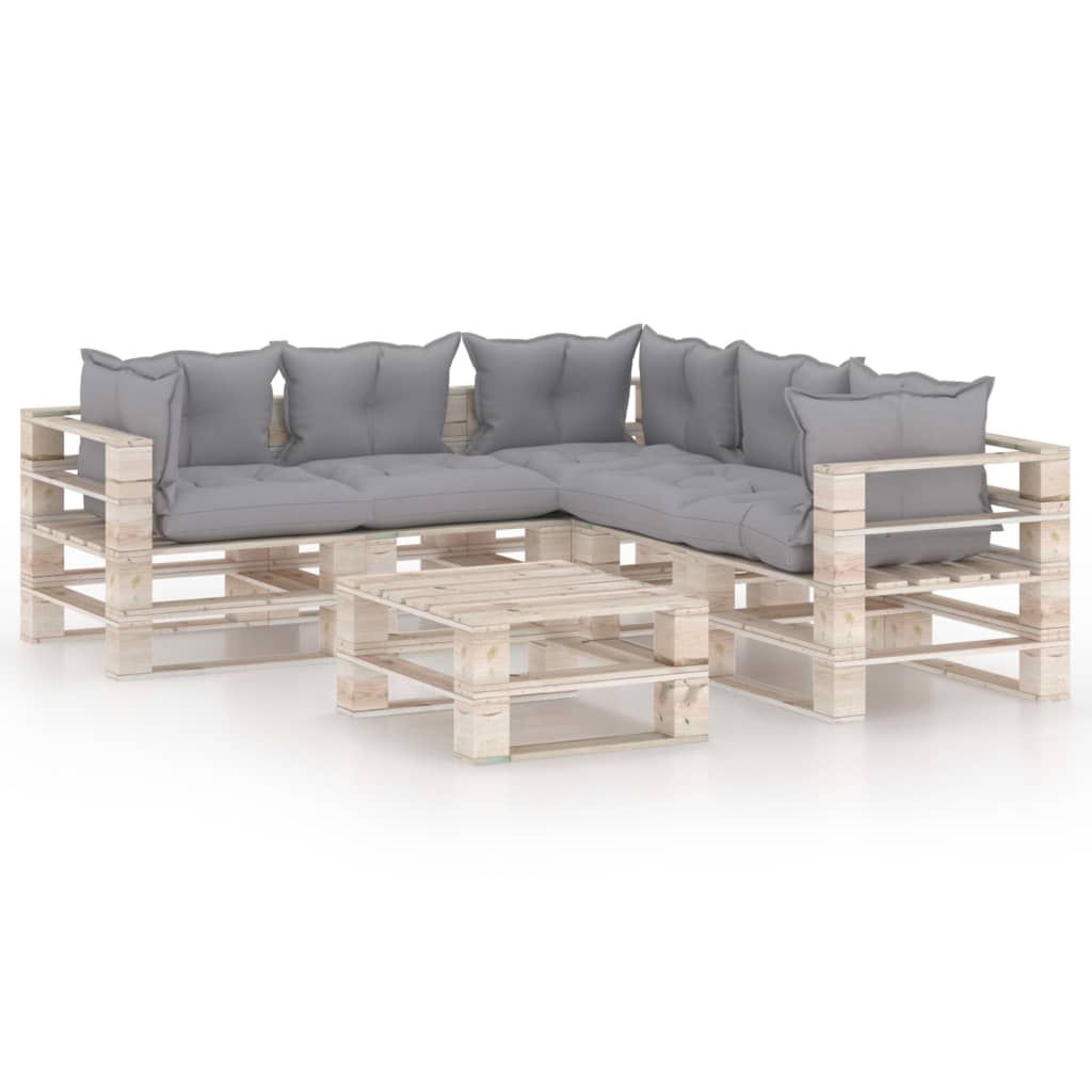 6-cz. zestaw mebli ogrodowych z palet, z poduszkami, sosna
