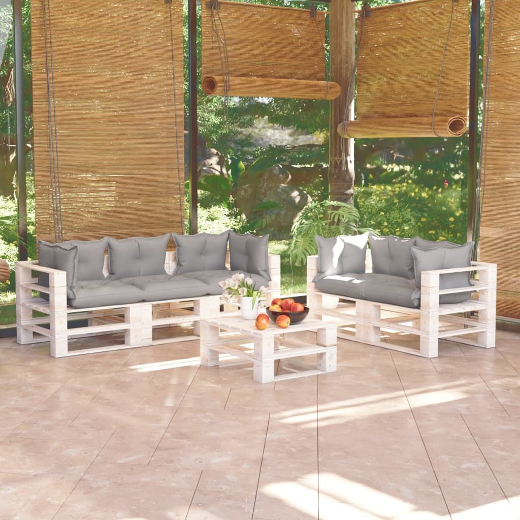 6-cz. zestaw mebli ogrodowych z palet, z poduszkami, sosna