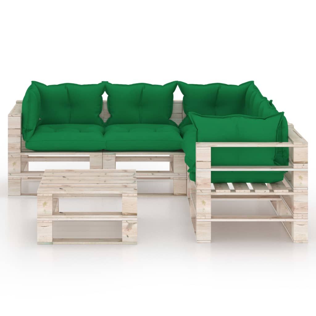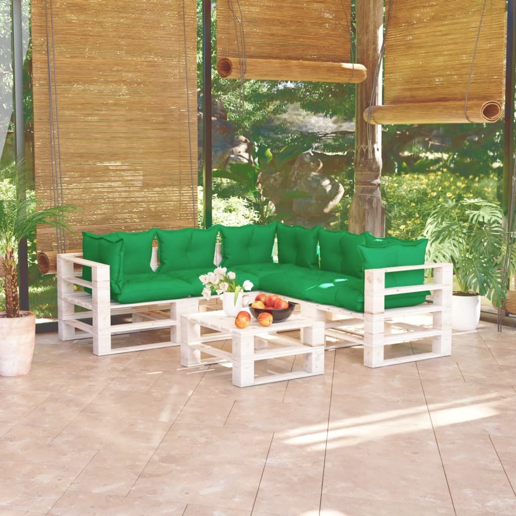 6-cz. zestaw mebli ogrodowych z palet, z poduszkami, sosna