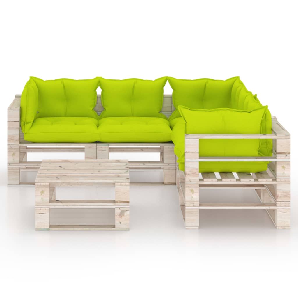 6-cz. zestaw mebli ogrodowych z palet, z poduszkami, sosna