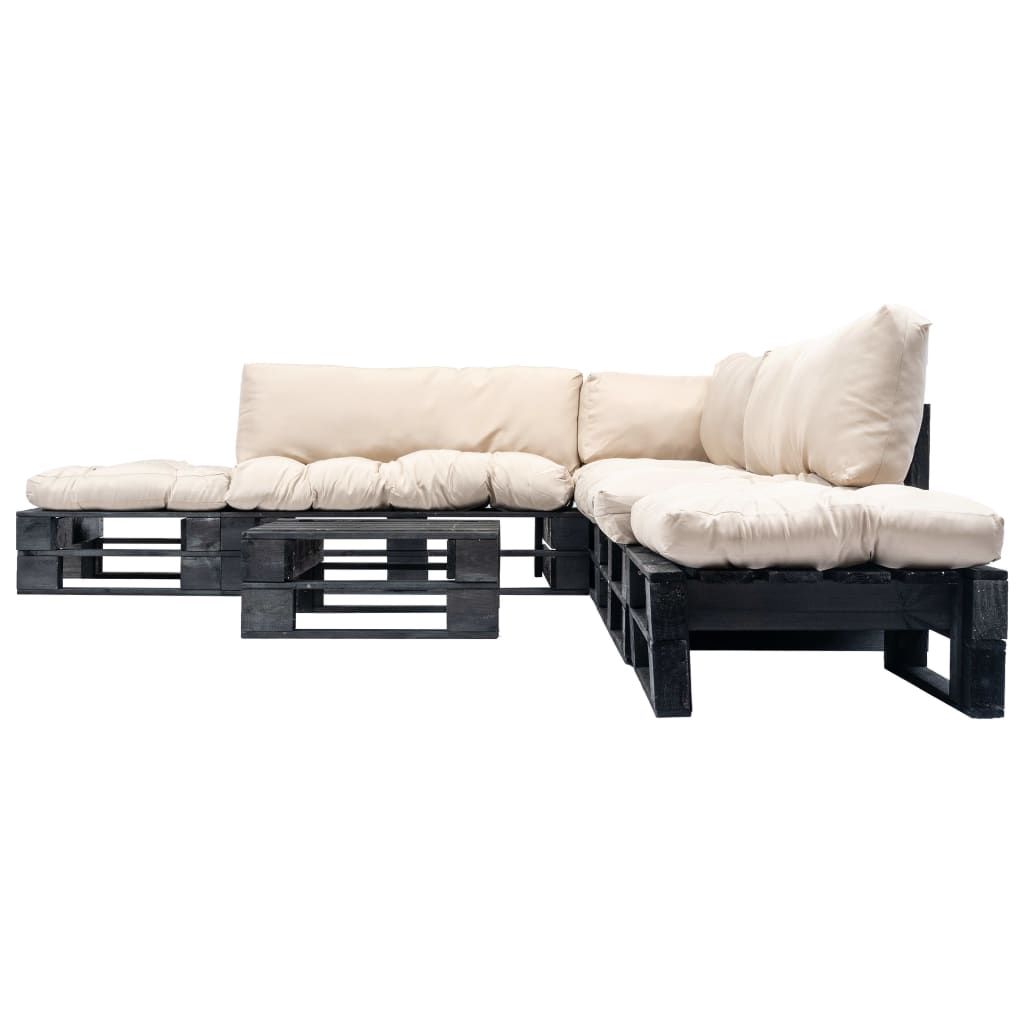 6-cz. zestaw ogrodowy, piaskowe poduszki, palety z drewna