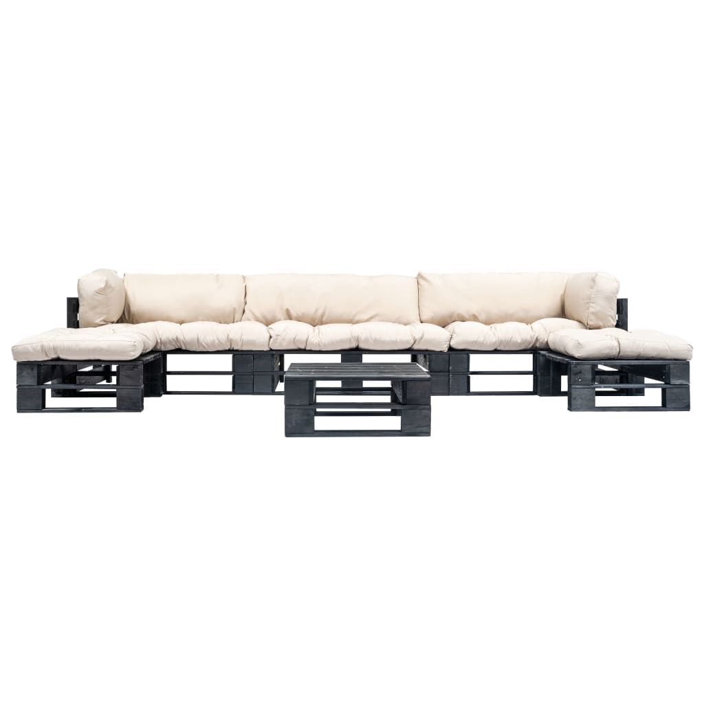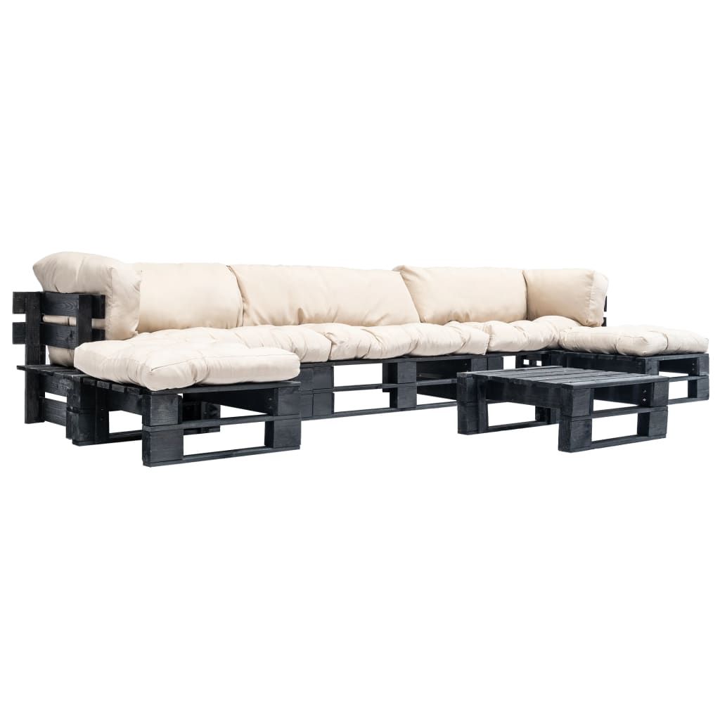6-cz. zestaw ogrodowy, piaskowe poduszki, palety z drewna