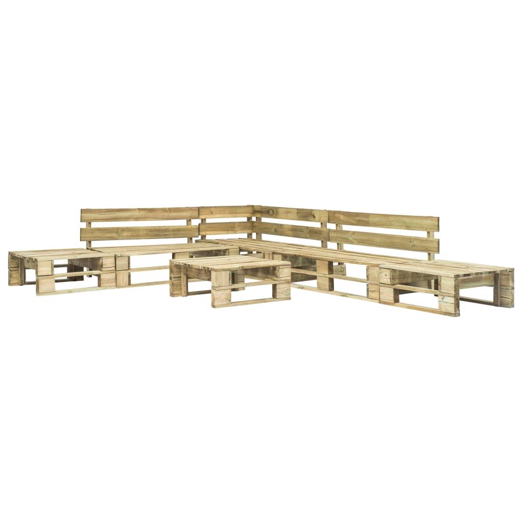 Nasz ogrodowy zestaw wypoczynkowy z palet będzie idealnym wyborem do relaksu i korzystania z pięknej pogody lub drzemki na świeżym powietrzu czy pogawędek z rodziną lub przyjaciółmi. Dzięki ponadczasowej konstrukcji z palet komplet ten wniesie odrobinę rustykalnego uroku na Twoje patio, do ogrodu lub salonu. Wykonany z impregnowanego drewna sosnowego zestaw wypoczynkowy do ogrodu jest trwały, odporny na czynniki pogodowe i przyjazny dla środowiska. Charakteryzuje się solidną konstrukcją i łatwością w utrzymaniu. Zestaw jest dostarczany wraz z grubo wypełnionymi poduszkami, dzięki czemu oferuje najwyższy komfort. Stolik kawowy jest idealny do postawienia przekąsek i napojów w zasięgu ręki. Dostawa obejmuje 2 sofy dwuosobowe, 1 narożną sofę dwuosobową, 2 stołki (pufy), stolik kawowy oraz zdejmowane poduszki na siedziska i oparcia. Montaż mebli jest łatwy. Prosimy mieć na uwadze, że drewno to materiał naturalny i może wykazywać pewne niedoskonałości.