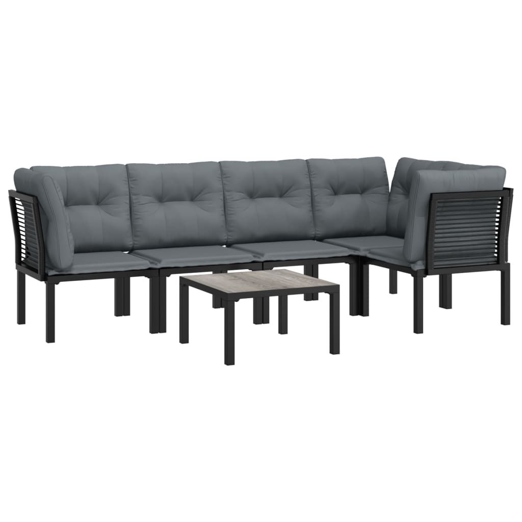 6-cz. zestaw wypoczynkowy do ogrodu, czarno-szary, polirattan