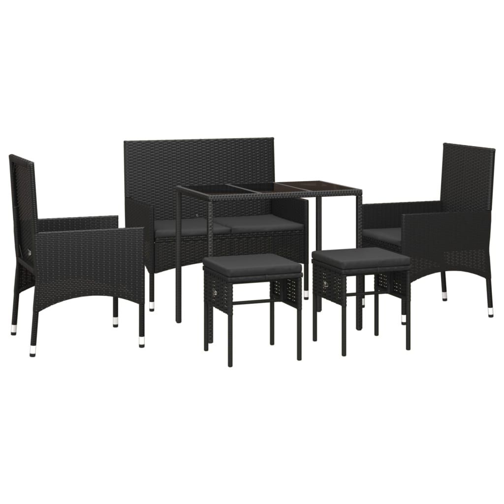 6-cz. zestaw wypoczynkowy do ogrodu, poduszki, czarny rattan PE