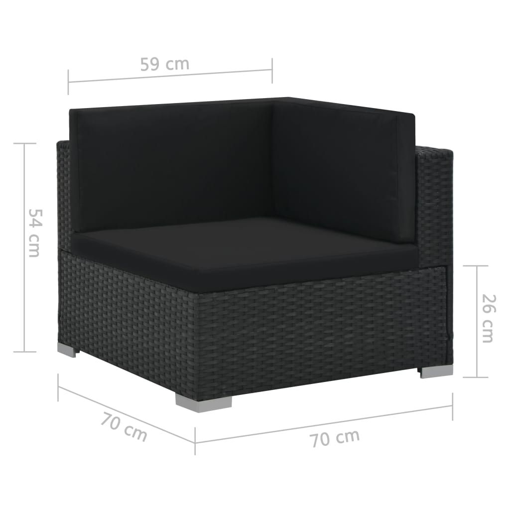 Polirattanowy zestaw wypoczynkowy, składający się z 1 sofy narożnej, 2 sof środkowych, 1 stolika kawowego, 2 pufów, 4 poduszek na oparcia i 5 poduszek na siedziska, stworzy stylowe miejsce do siedzenia na tarasie lub w ogrodzie. Dzięki odpornemu na czynniki pogodowe rattanowi PE zestaw wypoczynkowy jest łatwy w czyszczeniu, wytrzymały i odpowiedni do codziennego użytkowania na zewnątrz. Malowane proszkowo, stalowe ramy zapewniają stabilność i trwałość. Komplet jest lekki, a jego modułowe części można ustawiać w różnych konfiguracjach. Dostarczany jest wraz z bardzo wygodnymi, grubo wyściełanymi poduszkami na siedziska i oparcia, zapewniającymi najwyższy komfort. Ich łatwe w utrzymaniu, poliestrowe powłoczki można zdjąć i wyprać. Zestaw wymaga montażu. Uwaga: na czas deszczu, śniegu lub mrozu zalecamy przykryć meble, aby zapewnić ich dłuższą trwałość.