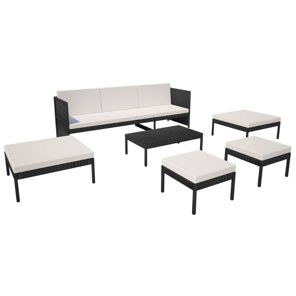 6-cz. zestaw wypoczynkowy do ogrodu, poduszki, rattan PE czarny