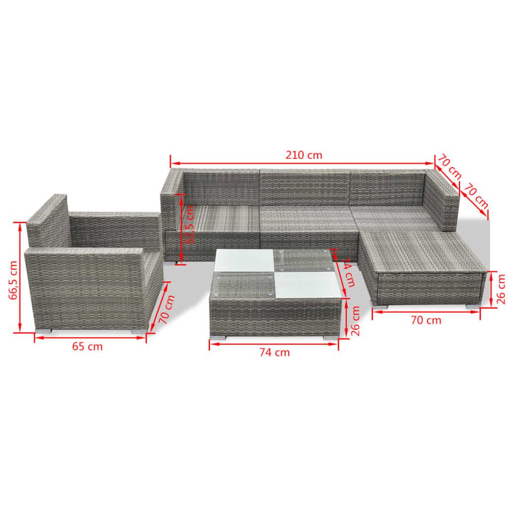 Zestaw rattanowych mebli ogrodowych łączy w sobie styl i funkcjonalność oraz z pewnością stanie się centralnym punktem w Twoim ogrodzie lub na tarasie. Jest on przeznaczony do całorocznego użytkowania na zewnątrz. Dzięki zastosowaniu odpornego na czynniki pogodowe oraz wodę rattanu PE zestaw ten jest łatwy do czyszczenia, wytrzymały i odpowiedni do codziennego użytkowania. Jego mocna, malowana proszkowo, stalowa rama zapewnia niezwykłą trwałość. Zestaw jest modułowy i lekki, można go więc swobodnie przestawiać i dopasować do każdego otoczenia. Grube, zdejmowane poduszki są bardzo wygodne. W skład przesyłki wchodzą 2 narożnikowe sofy, 1 środkowa sofa, 1 pojedyncza sofa, 1 otomana, 1 stolik, 5 poduszek na siedziska i 6 poduszek na oparcia.