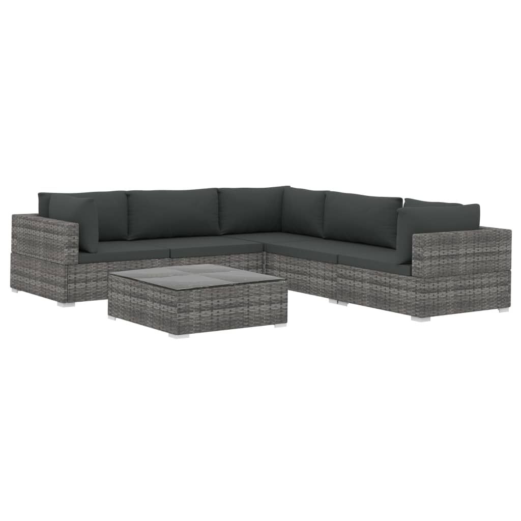 6-cz. zestaw wypoczynkowy do ogrodu, poduszki, rattan PE, szary