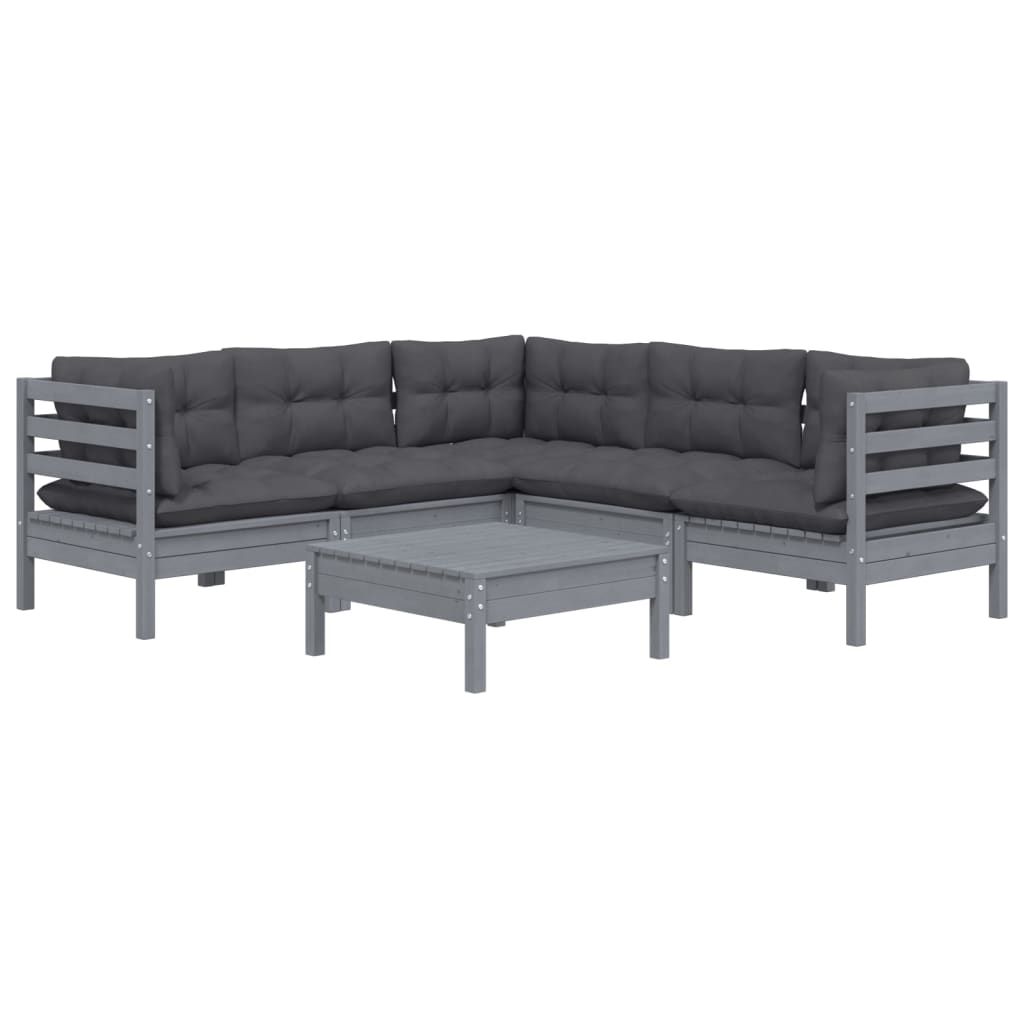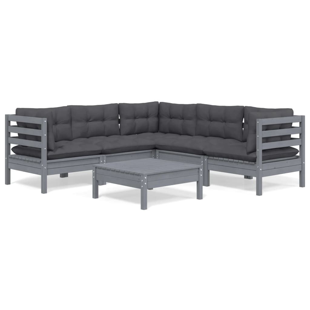 6-cz. zestaw wypoczynkowy do ogrodu, poduszki, szara sosna