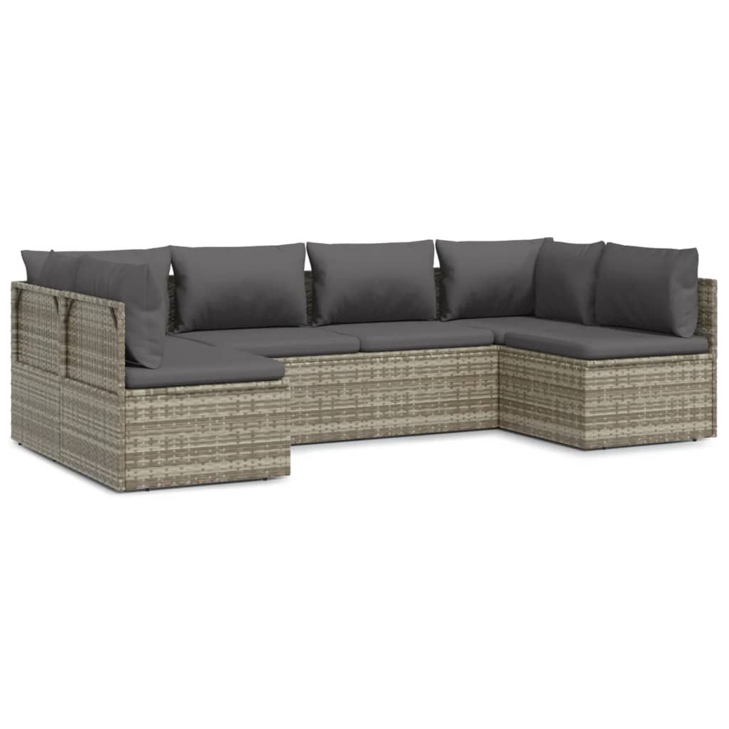 6-cz. zestaw wypoczynkowy do ogrodu, poduszki, szary, rattan PE