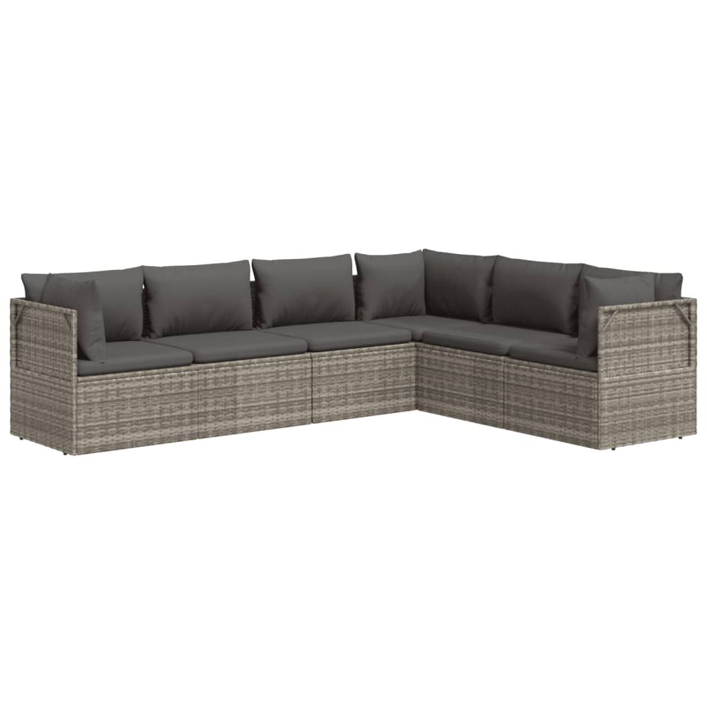 6-cz. zestaw wypoczynkowy do ogrodu, poduszki, szary, rattan PE