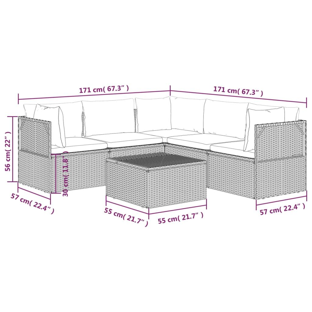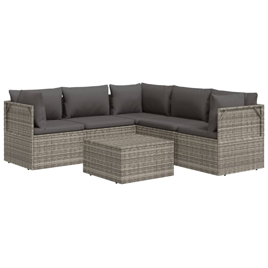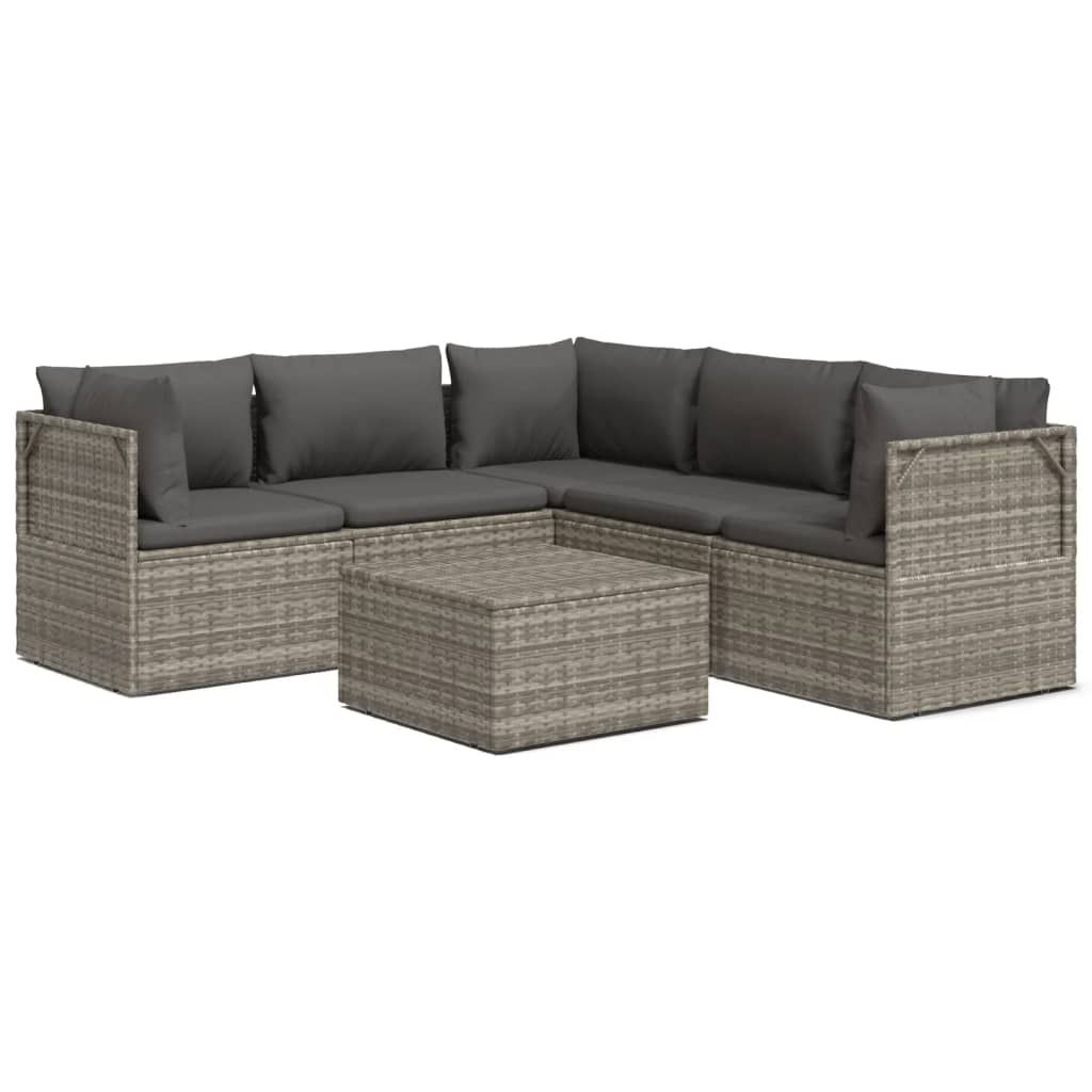 6-cz. zestaw wypoczynkowy do ogrodu, poduszki, szary, rattan PE