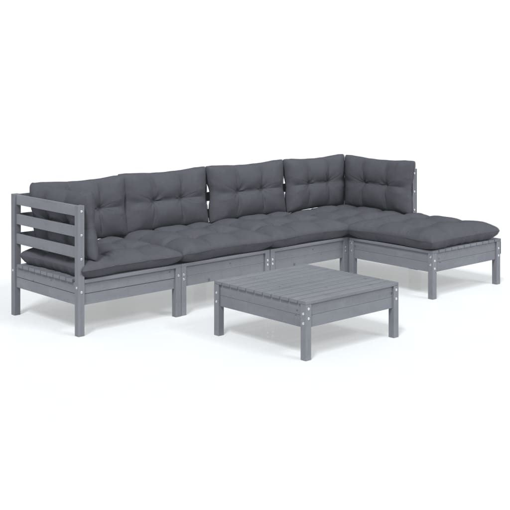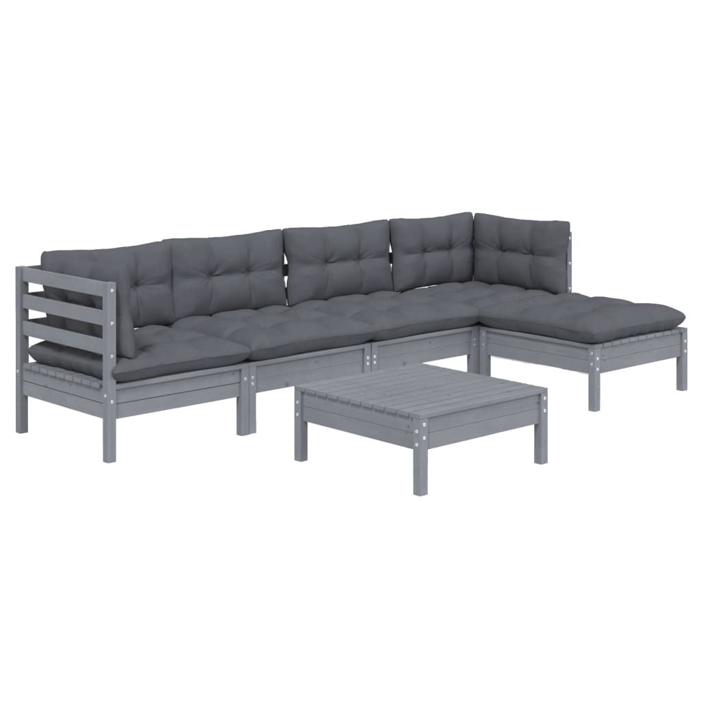 6-cz. zestaw wypoczynkowy do ogrodu, poduszki, szary, sosnowy