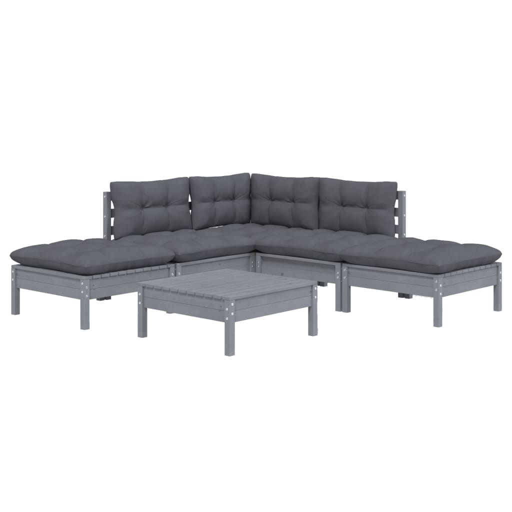 6-cz. zestaw wypoczynkowy do ogrodu, poduszki, szary, sosnowy
