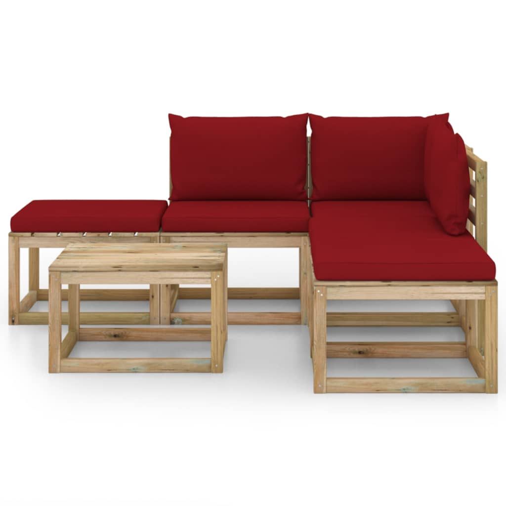 6-cz. zestaw wypoczynkowy do ogrodu, poduszki w kolorze wina